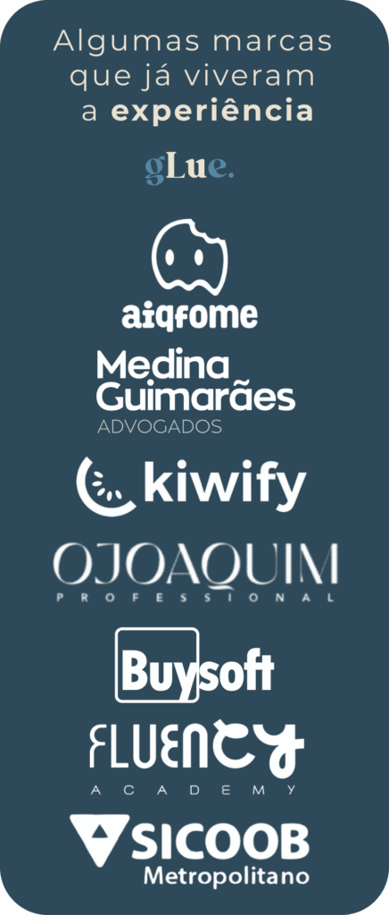 Estratégia: Decodificamos a cultura da marca, interpretamos o contexto e definimos a direção que transforma intenção em presença. Design de Jornada: Desenhamos o conceito, narrativas e ambientes que dão forma à estratégia que criam presença real. Direção e Execução: Dirigimos toda a operação, do planejamento à entrega, com precisão, fluidez e controle fino de cada detalhe. Impacto e Legado: Cada experiência é desenhada para gerar presença e consolidar percepção de valor que permanece.