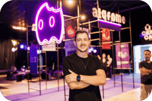 Evento empresarial Aiqfome - Dá Licença Pouso Alegre, realizado pela Glue - foto Igor Remigio CEO Aiqfome - Stand central